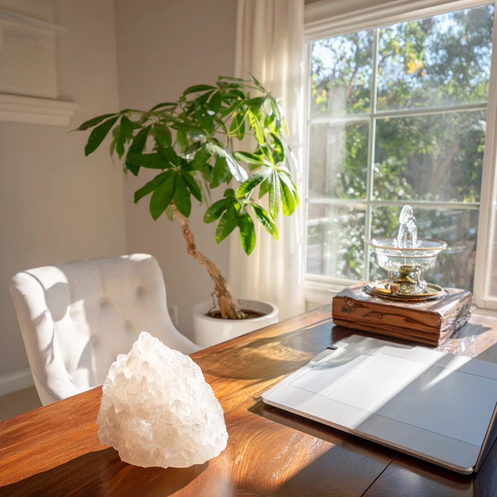 Feng Shui Your Space : Place wealth crystals like Pyrite, Jade, or Citrine in the southeast sector of your home or office—this is the traditional “Wealth and Abundance” area according to the Feng Shui Bagua map. Keep the area clean, well-lit, and introduce elements of Wood (plants) and Water (a small fountain or image) to activate growth and flow.
