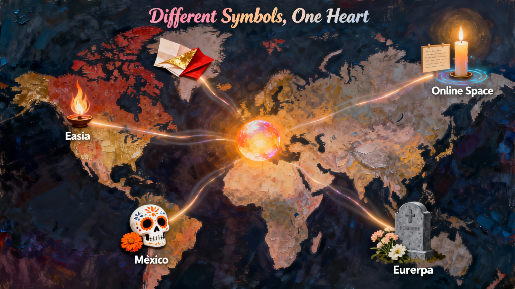 The practice of honoring those who have passed is not unique to any one culture. Around the world, people have developed their own ways to express love, memory, and connection—each using a different “language” to convey similar human feelings.