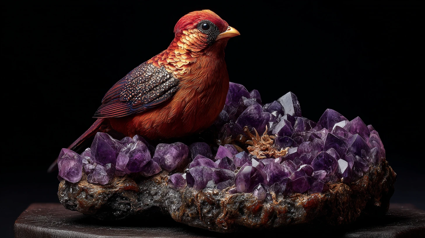 Eastern Allegory & Western Equivalent: This is the “Vermilion Bird’s Nest of Shared Foundation” (朱雀共巢). The Vermilion Bird (Fenghuang), symbol of harmony and partnership, builds its nest not in the ether, but on a solid, mineral-rich mountain (the earthy hematite in the stone). This stone is that nest, representing the beautiful, sacred partnership (amethyst) built upon a stable, secure, and mutually protective foundation (hematite). In the West, this is the concept of “Spiritual Partnership Grounded in Reality.”