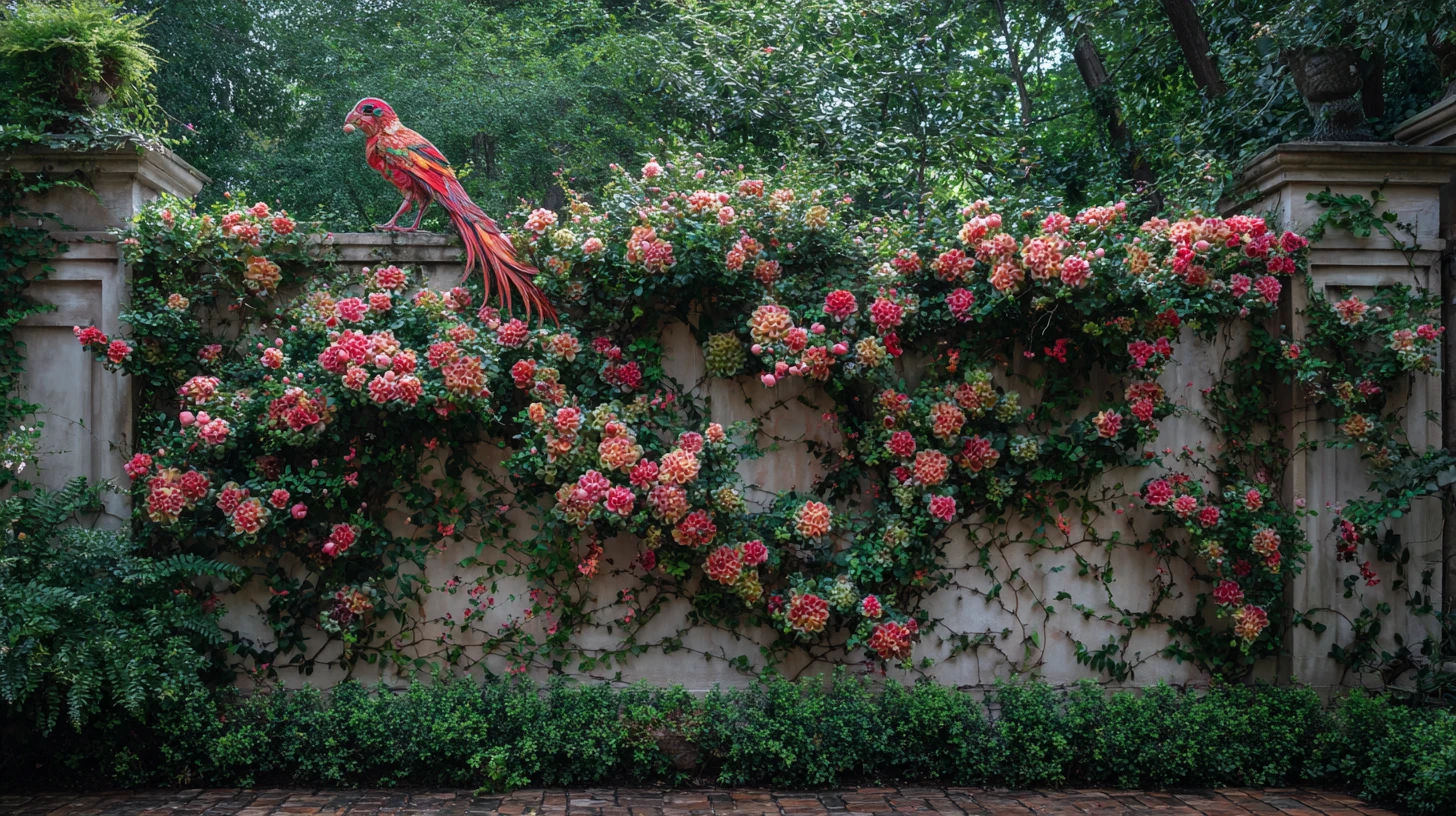 • Western Crystal Science: Trellised vitality on a protective wall. Channels life force in organized, upward patterns rather than chaotic bursts. The rainbow flashes represent joy finding expression even within structured growth.